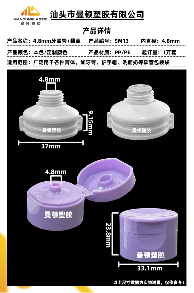 曼顿塑胶:定制4.8mm牙膏管盖 洗面奶净颜泥膜洗发护发素日化护肤品软管翻盖